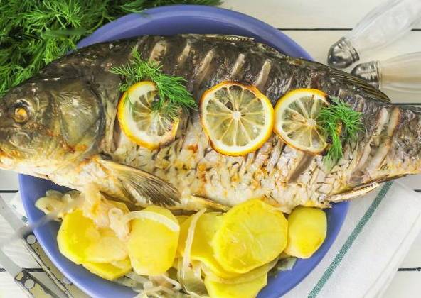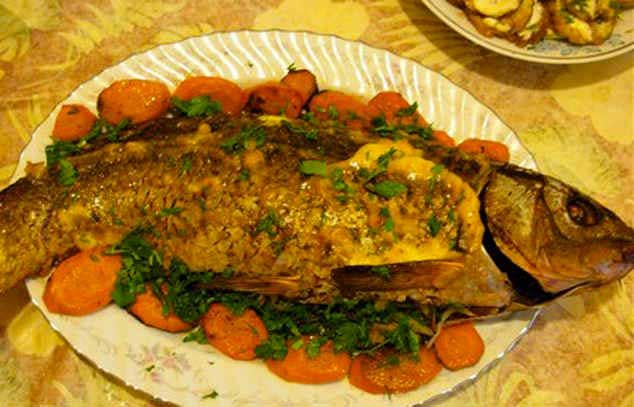 Фаршированный сазан, запеченный в духовке, считается самым вкусным блюдом.