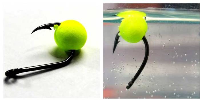 Если концентрация рыбы в водоёме высока и в стаях наблюдается большая пищевая конкуренция, отличной приманкой могут послужить шарики из пенопласта. Их обычно окрашивают в различные цвета и обрабатывают жидкими ароматизаторами (дипами).