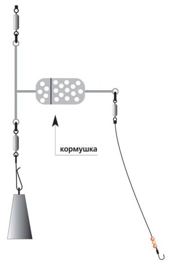 Ловля карася оснасткой с одной кормушкой не эффективна и оправдана лишь в условиях небольшой глубины и большого количества хлама и коряг на дне.
