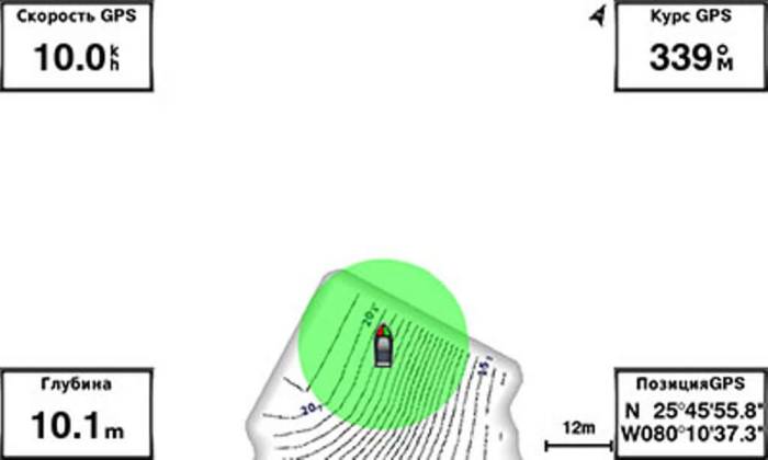 Карты создаются самостоятельно, то есть можно наблюдать исключительно свои маршруты с изобатами шагов 30 см. Они могут фиксировать и хранится в памяти прибора. Такой подход очень удобен, поскольку большинство стандартных карт не отражают реальный подводный рельеф. Высокая детализация изображения позволяет видеть даже самые мельчайшие очертания дна, включая потонувшие коряги или камни, с отображением глубины залегания.