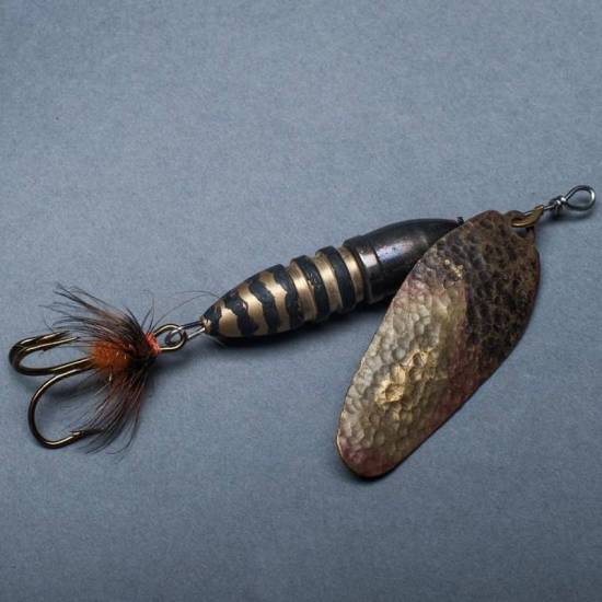 Представляют собой подгрузок, вокруг которого вращается металлический «лепесток». Лепесток может быть различной цветовой гаммы (в зависимости от вида водоема, в котором ведется рыбная ловля). В мутной воде должна быть яркая расцветка, в проточной воде цветовая гамма может быть более сдержанной.