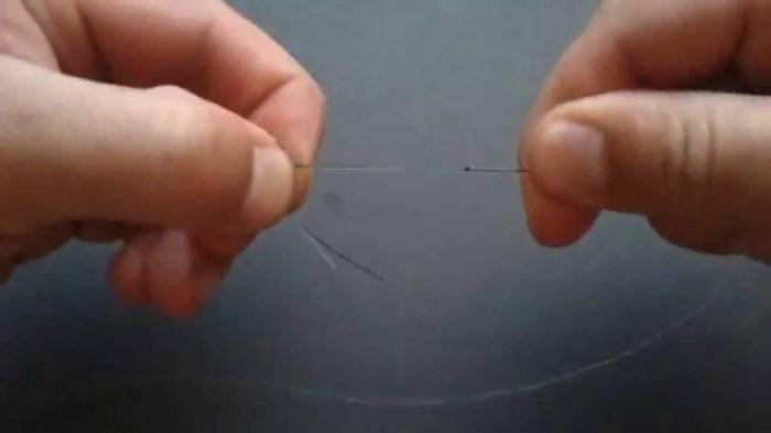 - В завершении, концы обеих лесок должны быть растянуты в стороны – витки будут перемещаться навстречу друг другу, образовывая упор