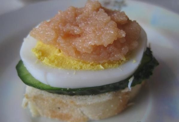 Дальше совсем просто: ломоть хлеба, слой сливочного масла, слой икры сколько не жалко…