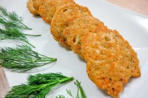 Совет! Можно обжарить и в панировочных сухарях. Но придется взять немного больше масла. Чтобы лишний жир стек, достаточно подержать готовые кусочки на бумажном полотенце.