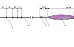 Для удобства использования кормушки на водоеме необходимо сделать глубиномер с отметками метража. Отметки должны быть легко различимы и находиться через каждый метр, лучше через полметра. Крепить кормушку лучше всего карабинчиком к петле на леске 0,25 – 0,35 мм. При таком креплении всегда можно поставить другую кормушку или грузик для промера глубины. Леса в некоторых отношениях удобней капроновой нитки, так как не смерзается на морозе, но можно использовать износившуюся “плетенку”. Отметки на лесе удобно делать узелками (на 1 метре – 1 узелок, на 2-х – 2 узелка, на 5-и метрах – 5 узелков). Наматывать лесу лучше всего на широкую бобину от лески или на проволочную пластмассовую катушку, прикрепленную к рукоятке. Рис. 7 – 8. На конце рукоятки для удобства лучше установить тюльпан, через который пропускается леска, он должен быть достаточно широким, чтобы отверстие не смерзалось на морозе.