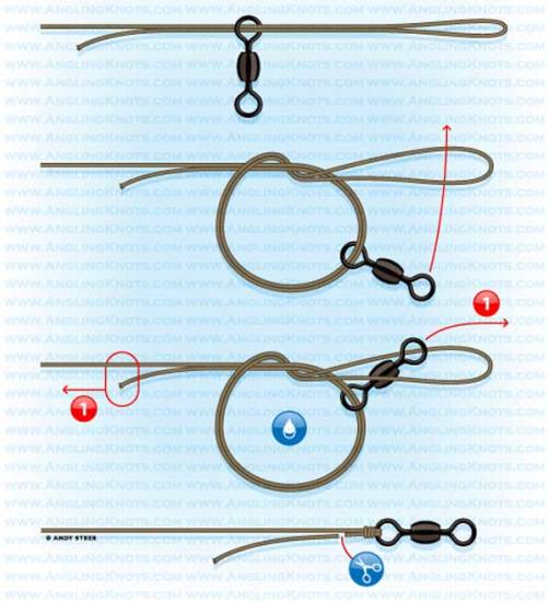 В основном узлы на вертлюжок используют самозатягивающиеся, так как они предназначены на крупную рыбу.