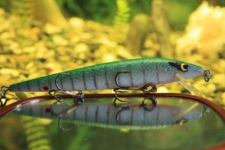 Бесспорно, смещение общей массы приманки к ее голове напрямую повлияет на центр тяжести тела воблера в потоке. Но фишка заключается в том, что если внимательно проследить за поведением приманки в процессе движения сверху, то будут хорошо заметны именно боковые колебания, которые имеют так называемую вертикальную ось. Ну а она и есть та точка, которая определяет центр тяжести воблера и, как правило, непосредственно в ее близости расположена петля, цепляющая нижний тройник.