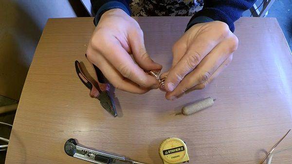 3. Обе половинки соединяются. Последний виток сгибается вручную, после чего можно изменить длину изделия. Идеальным будет изготовленный из дерева шаблон для намотки.