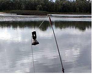 Основной леске придают небольшое натяжение и закрепляют на колышке. Вблизи последнего на шнуре располагают сигнализатор поклевки – обычно небольшая веточка. Последняя поднимается/опускается по вертикали при поклевках рыбы. В это время проводят подсечку.