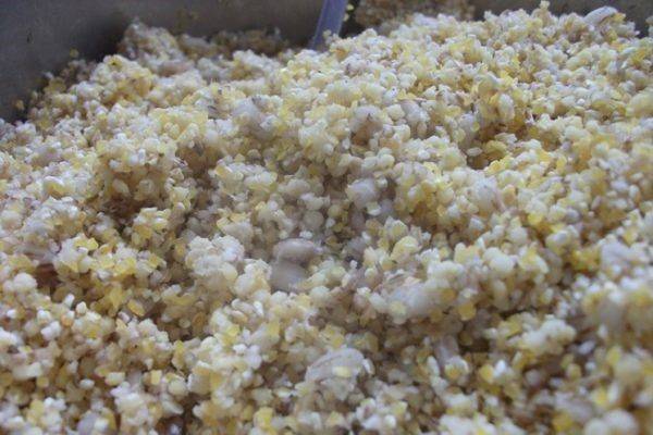 Второй способ приготовления прикормки включает в себя смесь из таких компонентов: два килограмма кукурузной крупы, килограмм двести грамм молотого арахиса, килограмм манки, по полкилограмма корма для домашних животных, макухи и любых хлопьев, четыреста грамм сухого молока и триста грамм сахара.