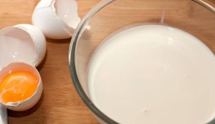 2. В отдельной емкости смешиваем сливки и яичные желтки.
