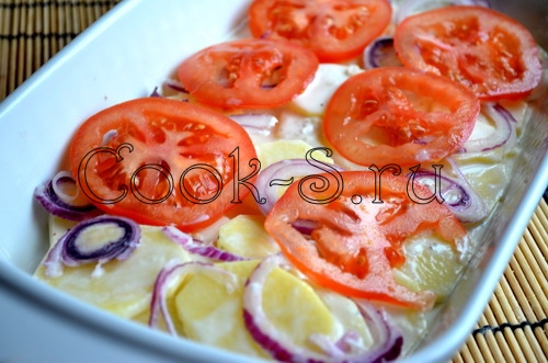 Лосось можно приготовить с картошкой. Но нужно учесть тот факт, что картофель готовится дольше, чем рыба. Поэтому нужно брать хорошо разваривающийся картофель, нарезать его тонкими ломтиками. Перед запеканием картошку желательно слегка обжарить или отварить до полуготовности.