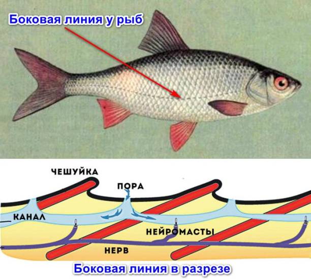 – основной орган чувств у рыб. Представляет собой канал, который идет под кожей вдоль всего тела, в области головы разветвляется, образуя сложную сеть. Имеет отверстия, через которые связывается с окружающей средой. Внутри расположены чувствительные почки (рецепторные клетки), которые воспринимают малейшие изменения вокруг.