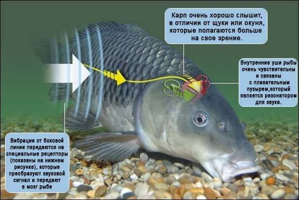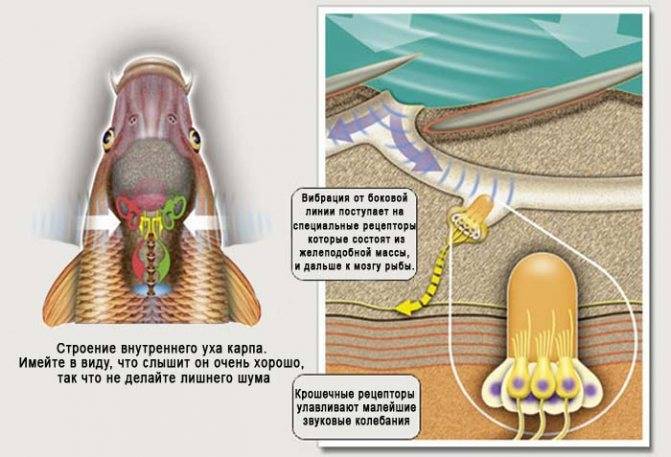 Рыба, находясь на глубине, как правило, не видит рыбаков, но прекрасно слышит, как рыбаки разговаривают и передвигаются в непосредственной близости от воды. Чтобы слышать, у рыб имеется внутреннее ухо и боковая линия.