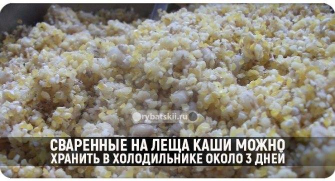 Смешанную прикормку храните в холодильнике, но тоже не более 3 дней. Так как в состав многих прикормок на леща входит горох, его можно приготовить в виде мастырки, а затем заморозить. И при необходимости брать нужное количество.