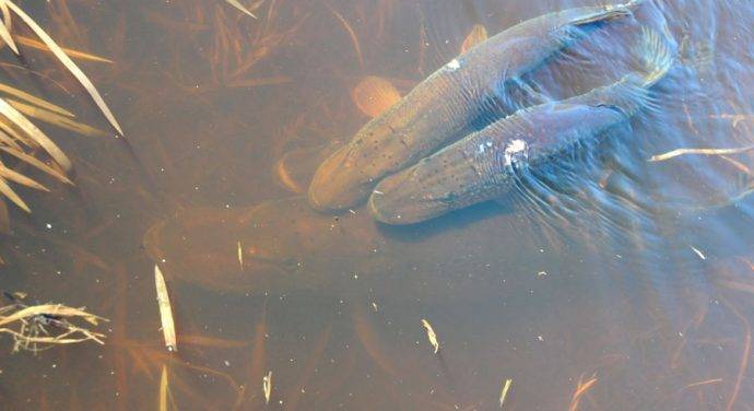 Если после нереста щук происходит быстрый спад воды, то большая часть икры высыхает и гибнет.