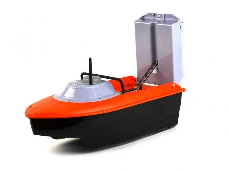 Самый доступный вариант, стоимость которого составляет 20000 рублей. Поставляется в комплекте с эхолотом. Можно купить оранжевого цвета, чтобы не потерять кораблик из виду. Вес комплекта составляет 4,5 кг. Без подзарядки может работать 3 часа. Загружается до 1,5 кг прикормки. Может двигаться во все стороны.
