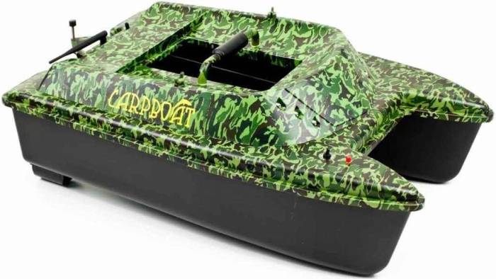 Дополнительные аксессуары, как эхолот, навигатор и материал корпуса (обычно карбон), выбирается рыболовом самостоятельно. Техника оснащена специальным бункером, в котором находится прикормка. Таких отсеков может быть несколько.