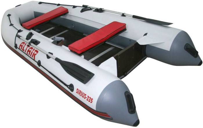 Альтаир. Тоже представитель петербургской школы – «АЛЬТАИР-Про». Отличается высокими ходовыми качествами, быстрый выход на глиссирование и предсказуемое поведение на высокой волне, при маневрировании. Надувной киль и 4 независимых отсека, обеспечивают безопасность лодок этой марки. Усиленные киль, транец и днище, позволяют использовать любые модели подвесных моторов. А комфортность использования, обеспечивают сиденья с мягкими накладками.