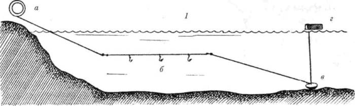 - Удочка. Можно получить неплохой улов при ужении в проводку. Этот способ годится для точек, где умеренное течение и можно проводить приманку вглубь на 200−400 метров.