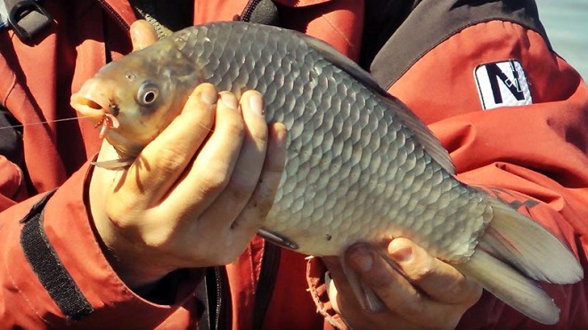 Весной река сильно разливается, она затапливает равнинные берега и рыба выходит на эти мелководные участки в поиске корма. Первыми выходят карповые рыбы: