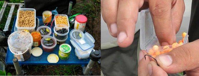 Также хороший результат дает добавление сладких компонентов. Однако для использования бойлов при ловли фидером необходимо использование специальной оснастки. Если с этим возникают проблемы, в качестве наживки можно использовать перловку, кукурузу или вареный картофель. Отчасти карп является сладкоежкой, поэтому его привлекают различные наживки с добавлением сладких компонентов. Этим фактором успешно пользуются рыболовы во всём мире.