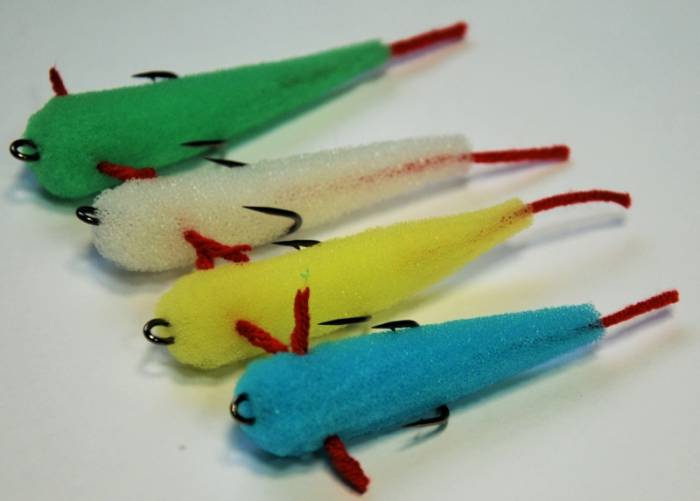 Классические приманки из поролонового материала – не дорогие и легко изготавливаются в домашних условиях.