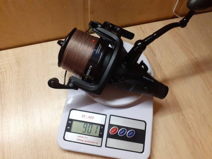 Во-первых, катушка должна быть надежной, мощной и выдерживать большие нагрузки. Такие модели можно купить и по вполне доступной цене – в районе 2 – 3 тыщ. Но есть у больших катушек и минус – значительная масса. Вот, скажем, восьмитысячник из нашего арсенала, хоть далеко и не самый дешевый, но вместе с намотанной леской весит больше 900 г (фото 3).