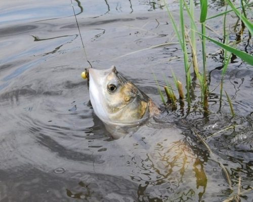 Закидывать наживку нужно подальше от берега. В водоемах встречаются крупные толстолобики. Они могут повредить снасти. Если такая попалась на крючок, не нужно торопиться и форсировать вываживание. Дайте рыбе устать. Вытягивайте ее понемногу, а когда приблизится к берегу, используйте багор