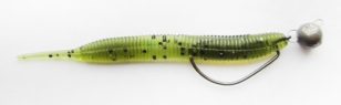 - Эластичность и мягкость. Съедобная резина, по сравнению с обычной, более мягкая и эластичная. Это делает ее движения при проводке очень реалистичными, что привлекает хищника.