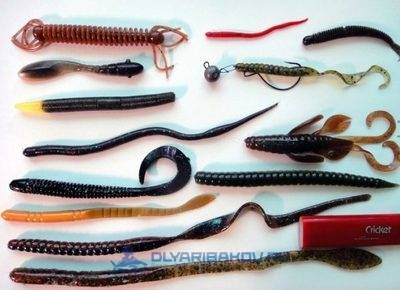 - Имеющие цилиндрическое удлинённое тело твистеры, слаги, черви, рачки, различные силиконовые креатуры (имитирующие личинок насекомых) диаметром от 10 до 15 мм.