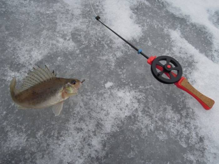 Можно использовать удочку-балалайку или мормышечную удочку с открытой катушкой. Подойдет и снасть с мотовилом, кобылка или другая, но такие конструкции применяются сегодня нечасто. Удочки с катушками удобнее в использовании.