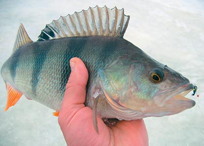 не замерзает и не покрывается наледью при отрицательных температурах; хорошо тянется и амортизирует рывки окуня на крючке – это имеет существенное значение при ловле рыбы с такими слабыми губами; меньше заметен в воде, что важно при охоте за полосатиком, у которого зрение развито очень хорошо. Можно использовать и флюорокарбон