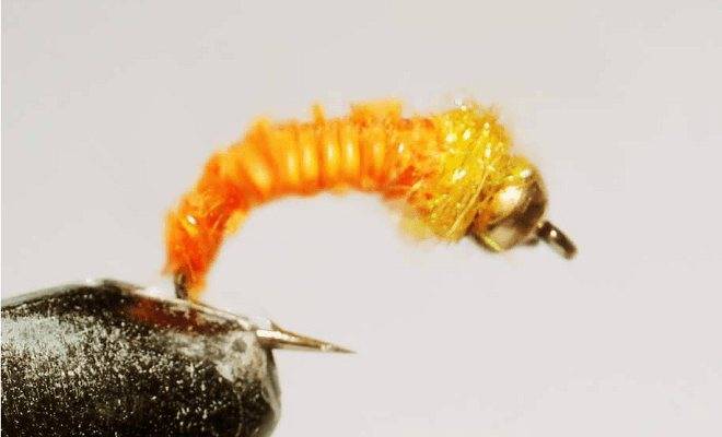 К универсальным приманкам, с которыми можно добывать хариуса с весны до осени, относится имитация личинки овсянки. В классическом исполнении мушку атакуют сиг, чебак, форель и язь