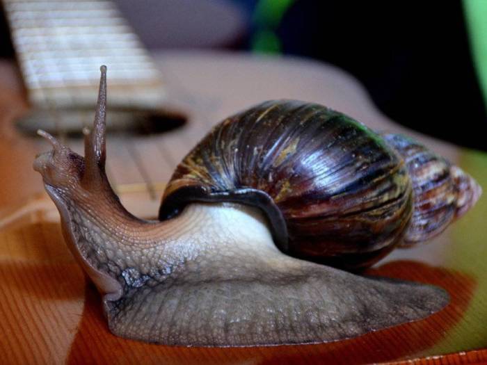 Ахатина – это сухопутный моллюск. Его длина может достигать 30 сантиметров, что является внушительным значением. Естественная среда обитания – тропики. Что касается Франции, там ахатины очень популярны. Они очень быстро размножаются и растут. Это позволяет активно использовать таких улиток в местной кухне. Что касается проживания в естественной среде, улитка достаточно сильно вредит сельскохозяйственным культурам. Ее излюбленным лакомством считается сахарный тростник. Кроме того, ахатина страдает от недостатка кальция, поэтому соскабливает раковиной известь со стен зданий. Это наносит им существенный вред.