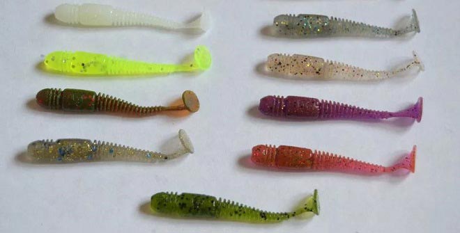 Запасаемся размерами от минимума до 4 дюймов в различных цветах. Обычные же размеры – от 5 до 10 см. Обязательно нужны оттенки темно-коричневого (MO, GFMO), фиолетового и желто-зеленого. Хорошо работает и съедобная резина, особенно в периоды пассивного клева. Силикон у таких приманок мягкий, пропитан ароматизаторами и раствором соли. Хранить съедобку нужно в пакетах, чтобы не выветривалась и не грубела.