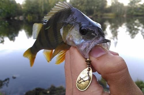 Окунь в ноябре на спиннинг ловится на разные виды блёсен – колебалки и вертушки, а также на некрупные воблеры.