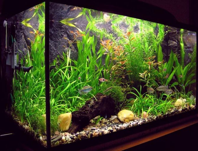 Освещать аквариум при помощи приборов следует не больше 12 часов, при этом свет должен быть достаточно мощным.