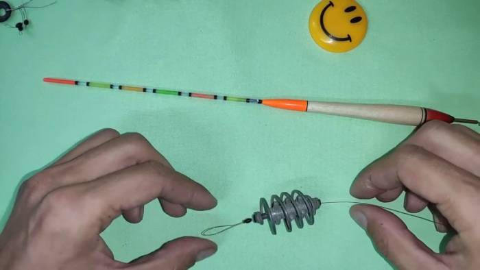- на леску надевается трубочка размером 12−15 см, на которой размещается грузило. Она предотвращает спутывание лесы и служит своеобразным ограничителем между нижней частью снасти и самим поплавком;