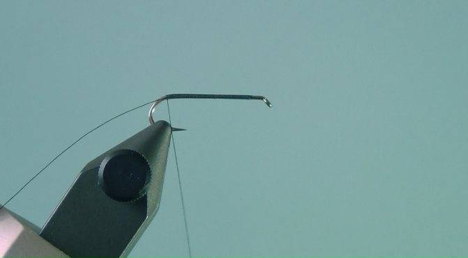 Основа в виде мокрой мушки изготавливается типичным способом для любой выбранной мушки, за исключением того, что в тело монтируется проволока, на конце которой делается петля, на которую одевается меленький лепесток.