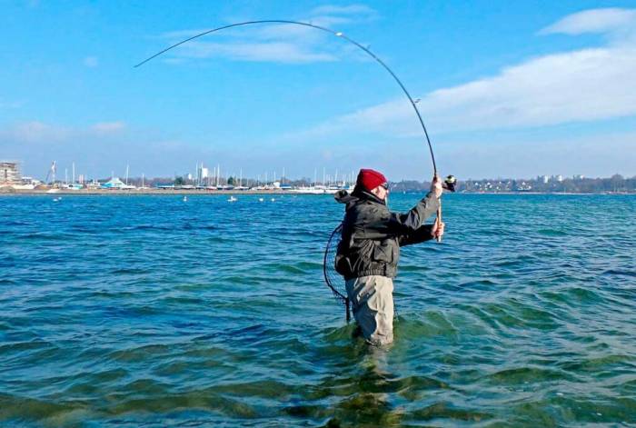 Самым лучшим выбором будет специальное морское удилище, имеющее необходимую мощность и защитное покрытие от разъедающей морской соли. Тест удилища следует выбирать от 150 грамм и выше, так как грузила следует применять тяжелые – которые хорошо держатся на морском дне.