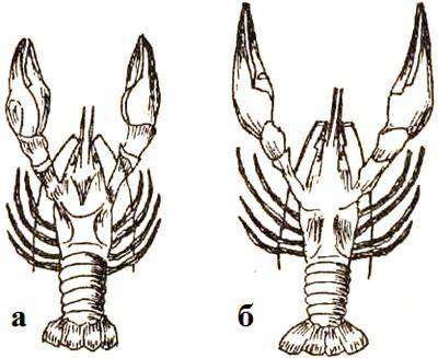 Рисунок 1. а — благородный широкопалый рак, б — обыкновенный длиннопалый рак