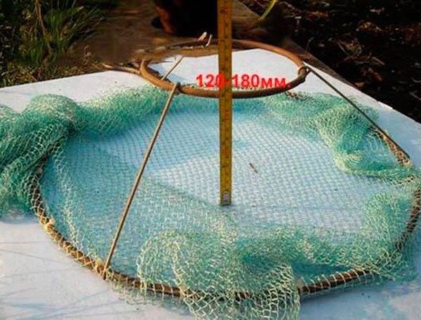 Данные ловушки являются самыми простыми и удобными в применении. Как правило, они делаются из двух тонких металлических прутов в форме круга и затем обтягиваются мелкой сеткой. Вверху данные устройства подвязаны веревкой для более удобного вытаскивания их из воды.