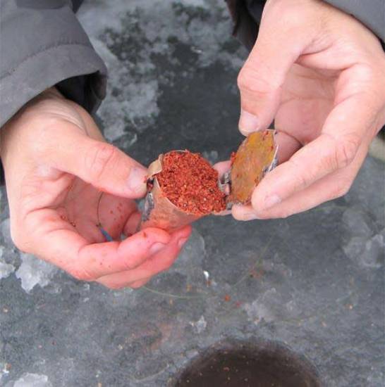 - На 3 части прикормки добавляйте 1 часть крупного мотыля. Чем ближе к перволедью и последнему льду, тем больше можно добавлять мотыля, доводя соотношение до 2 к 1 (2 части прикормки, 1 часть мотыля).