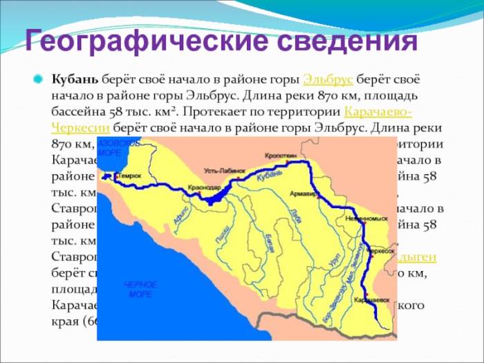 площадь бассейна 58 тыс. км². Протекает по территории Карачаево-Черкесии берёт своё начало в районе горы Эльбрус. Длина реки 870 км, площадь бассейна 58 тыс. км². Протекает по территории Карачаево-Черкесии, Ставропольского края берёт своё начало в районе горы Эльбрус. Длина реки 870 км, площадь бассейна 58 тыс. км². Протекает по территории Карачаево-Черкесии, Ставропольского края, Краснодарского края берёт своё начало в районе горы Эльбрус. Длина реки 870 км, площадь бассейна 58 тыс. км². Протекает по территории Карачаево-Черкесии, Ставропольского края, Краснодарского края (662 км) и Адыгеи берёт своё начало в районе горы Эльбрус. Длина реки 870 км, площадь бассейна 58 тыс. км². Протекает по территории Карачаево-Черкесии, Ставропольского края, Краснодарского края (662 км) и Адыгеи. Впадает в Азовское море.
