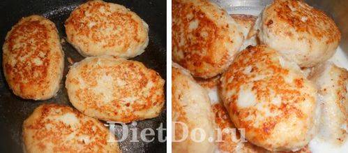 - Любителям сыра понравятся нежные и вкусные котлеты с сыром — сделайте лепешку из рыбного фарша, в серединку положите кусочек сыра или натёртый на тёрке, сформируйте котлету, обваляйте в манке и обжарьте.