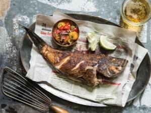 - Эта рыба прекрасно годится для жарки. По традициям средиземноморской кухни лаврака, конечно, очищенного от чешуи, потрошат, разрезают на куски нужного размера, после чего обмазывают оливковым маслом, слегка поливают лимонным соком, солят и покрывают специями по вкусу. Часто перед обжаркой тушку фаршируют ароматными травами. После этого ее можно обжарить на сковороде или завернуть в фольгу швом вверх.
