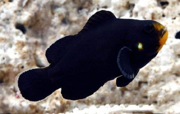Полночный оцеллярис – обладатель тёмно-коричневого туловища. Только его голова окрашена в приглушённый огненный цвет.