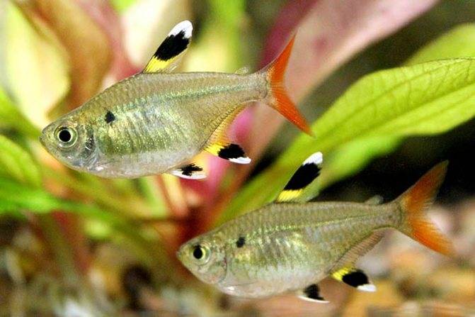 Пристелла ридлея (Pristella maxillaris) называют звездчатой благодаря золотому окрасу с желто-черными полосками на плавничках и рыжим хвостом. Ее туловище 4-4,5 см, высокое и сплюснутое по бокам.