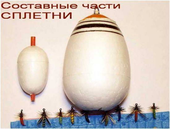 Проще всего, конечно, купить готовую сплетню в магазине. Но, у любителей мастерить своими руками, процесс изготовления сплетни много времени не займёт. Так же, как и описано выше, необходимо вырезать из твердого пенопласта два поплавка. Первый должен быть большой, примерно с яблоко размером, второй – с куриное среднее яйцо. Оба огружают свинцовыми шарами, и пропускают внутри пластиковые трубочки. Они нужны для того, чтобы леска не цеплялась за пенопласт.